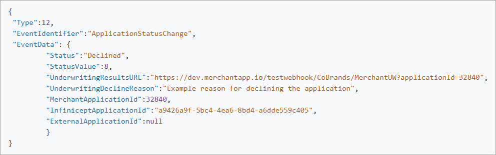See this update published within the Guides section: Webhook: ApplicationStatusChange.