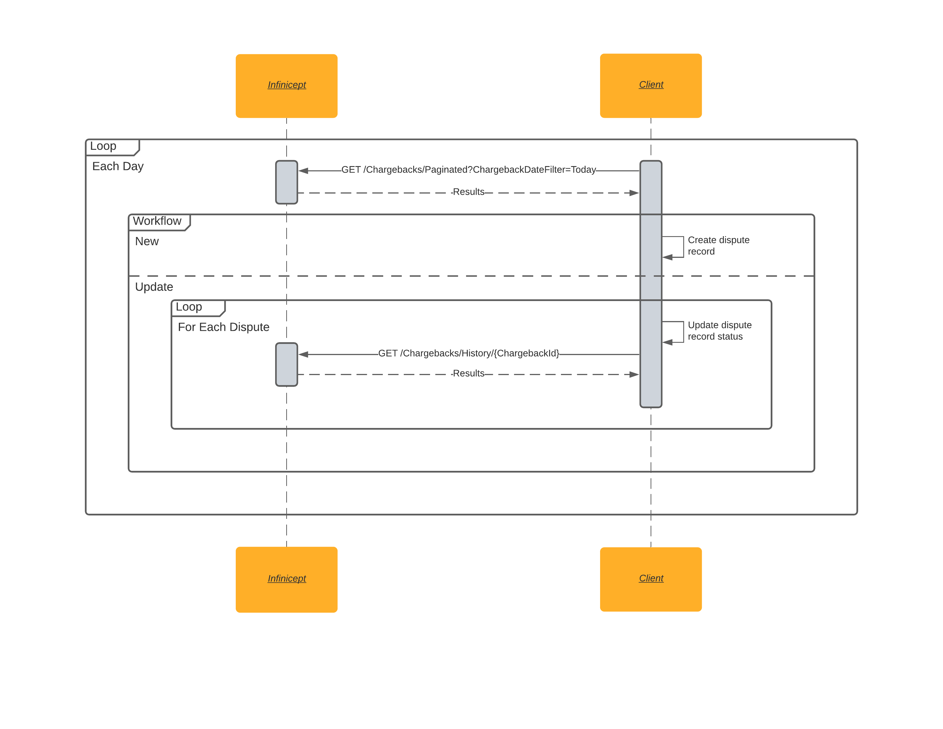Retrieves disputes for the specified ChargebackFilterDate. Set it to _Today _to pull and review the disputes received each day. Then review the response data by CaseId to determine if it is a new dispute or an update to an existing dispute.